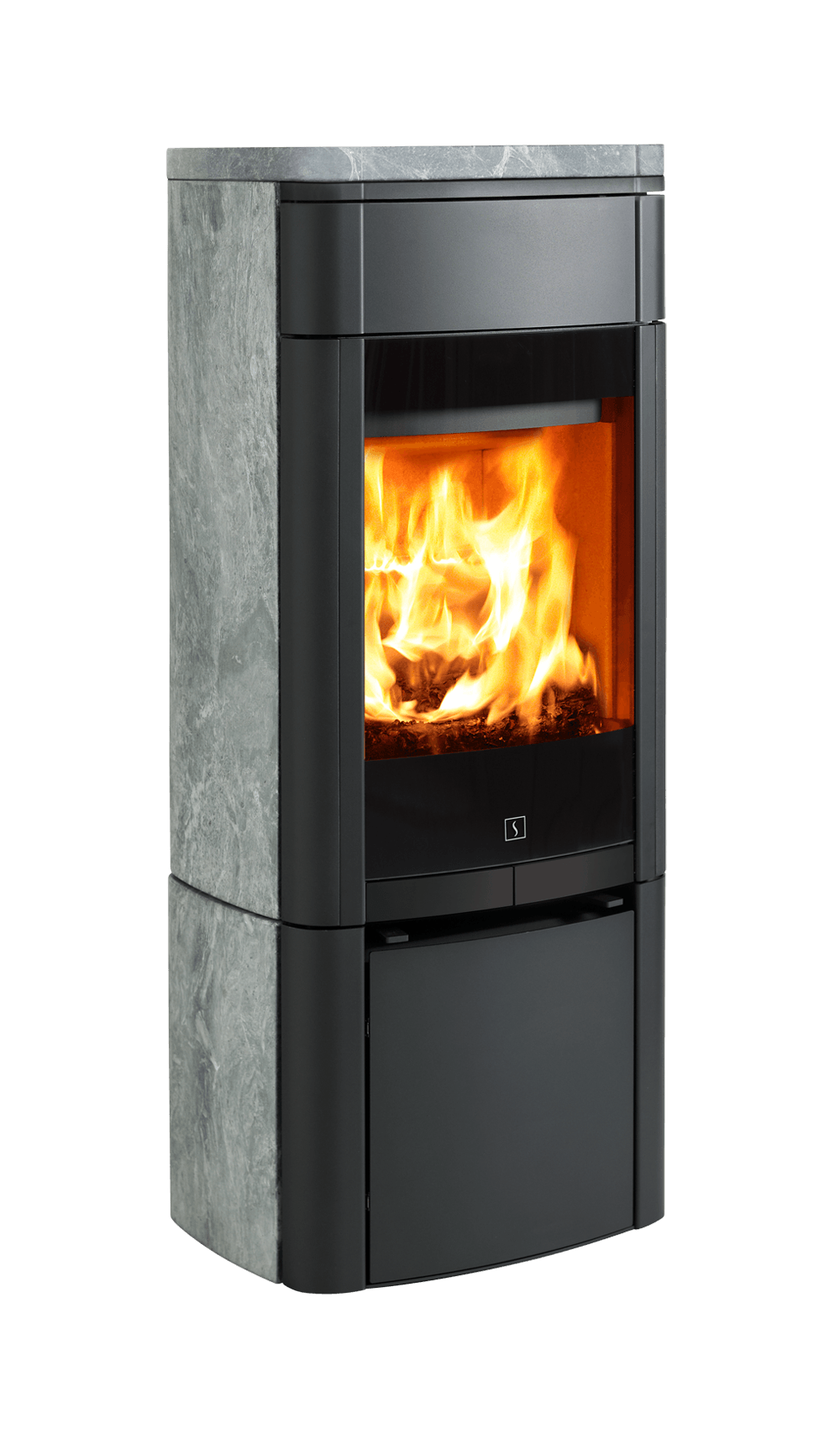 Denne model fås med sidebeklædning og topplade i varmeakkumulerende fedtsten, med eller uden sideglas. Hvis man ønsker en lidt højere ovn, kan der tilkøbes en 80 mm høj sokkel.