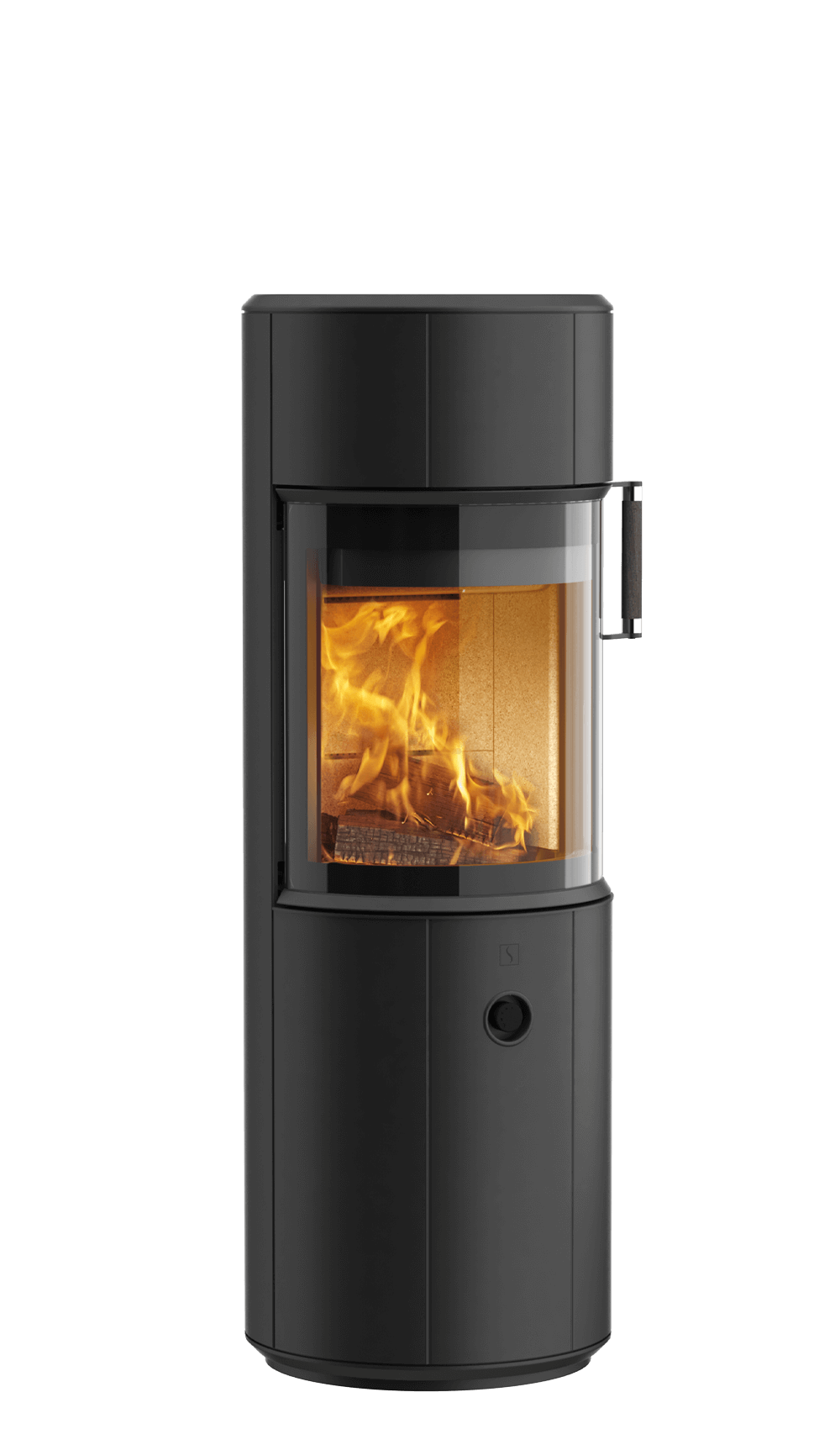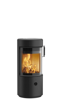 - Rund pejs med flad bagside, som gør at den ikke fylder meget
