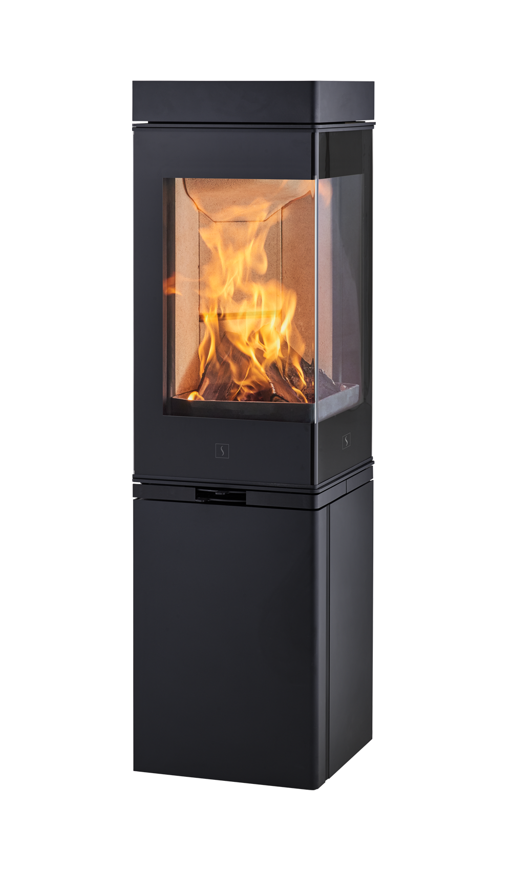 Scan 80-1 er med lukket sokkel, mens Scan 80-2 har en praktisk dør under brændkammeret til opbevaring af træ.