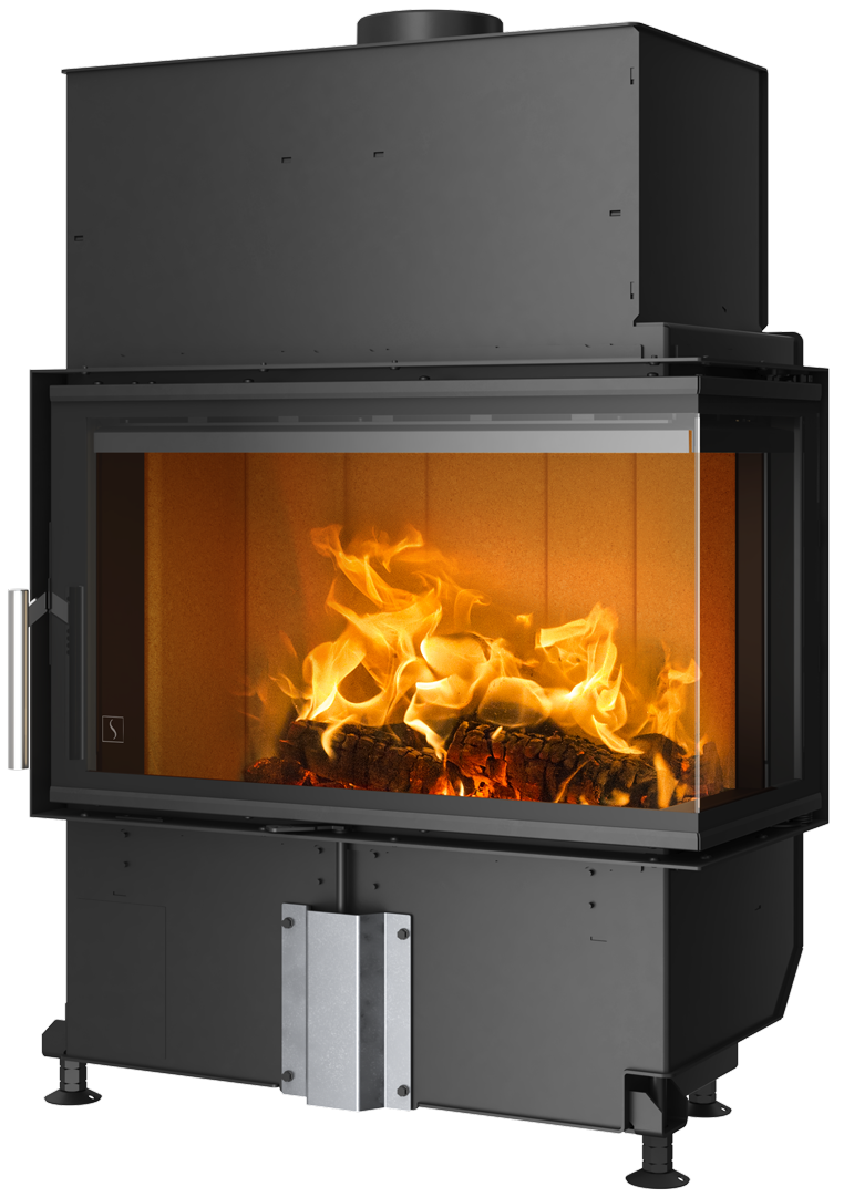 Scan 5107 er en pejseindsats med et diskret, men karakterfuldt design, som lader dig nyde flammerne gennem den tosidede glasdør og giver følelsen af at sidde ved en åben pejs. Luftindtaget reguleres nemt med én enkelt håndtag, og det smukke greb samt den sorte ramme omkring glasset fuldender helhedsindtrykket. Vælg mellem en højre- eller venstrehængslet model, som kan installeres midt i rummet eller passer perfekt i et hjørne. Du kan også installere ekstra varmelagrende sten i begge pejseindsatser. Disse er skjult i det øverste kammer og giver ekstra varme i op til 12 timer efter, at den sidste træklods er lagt i.